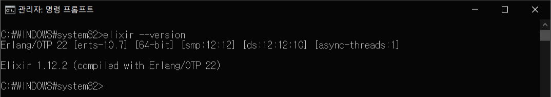 - 정상적으로 Erlang, Elixir의 버전이 출력되는지 확인