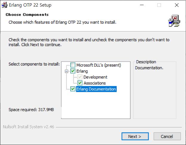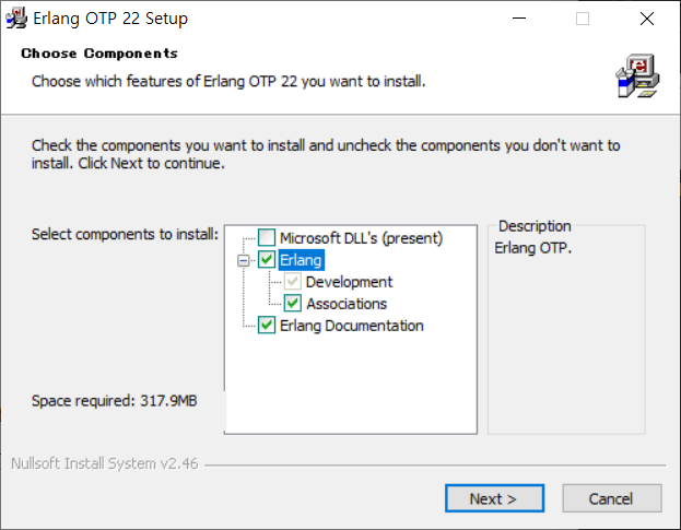 ④ Erlang 설치 완료 후 명령 프롬프트창에서 설치 계속